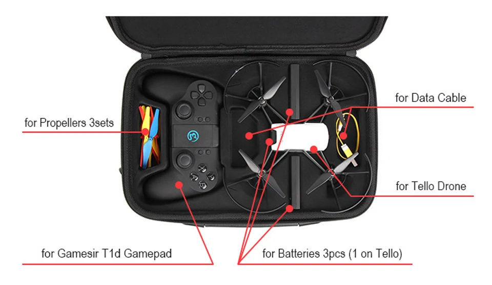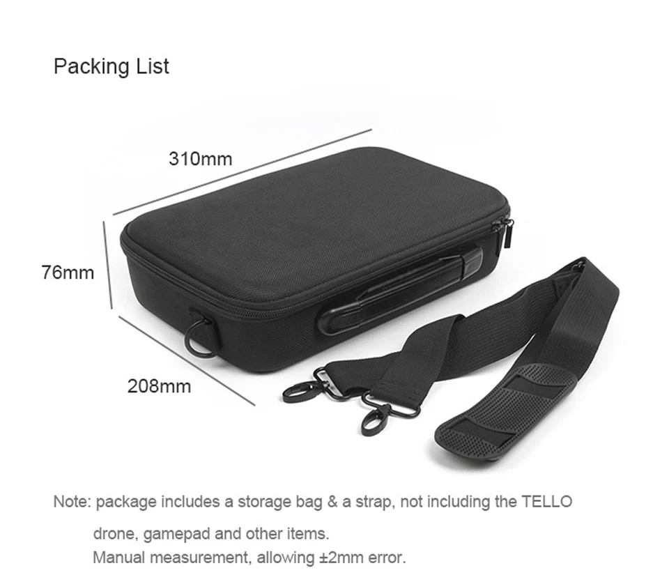 Портативный чехол для переноски нейлоновая сумка для хранения с плечевым ремнем для DJI Tello Drone GameSir T1d чехол для геймпада комбинированный дропшиппинг Характеристика: 100% новый и высокое качество Tello Kit Bag, можно поместить в ручку дистанционного управления Gamsir T1D, кабели и пропеллеры. Эксклюзивная Настройка для DJI Tello, Защитите ваш геймпад Tello & GameSir T1d от царапин и ударов. Изготовлен из нейлона и мягкой ЭВА, прочный и водостойкий Легко носить на открытом воздухе с ручным ремнем и плечевым ремнем Легкий доступ к вашему DJI Tello с двойным отверстием на молнии Ультра компактный и легкий Идеальная защита для дрона DJI Tello во время путешествий и других видов активного отдыха. Размер: 310*208*76 мм Цвет: черный Материал: ЭВА, нейлон Посылка: 1 х сумка для хранения 1 x ремешок (Дрон и другие аксессуары не включены!) Примечание: 1. Замеры сделаны вручную, поэтому возможны отклонения на 0-3 см. 2. Из-за различных эффектов монитора и светильник фактический цвет изделия может значительно отличаться от цвета, показанного на фотографиях. Спасибо за понимание, хороший день!