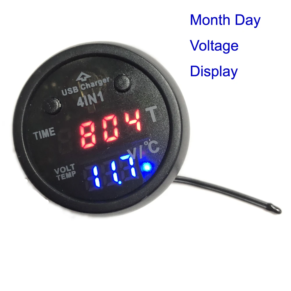 4в1 12 В Автомобильный дисплей с температурным напряжением, монитор аккумуляторной батареи, вольтметр, отображение календарных часов, 2.1A автомобильное зарядное устройство Usb