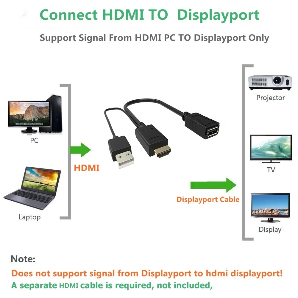 2:Этот адаптер не двунаправленный. Он преобразует только выходной сигнал HDMI (устройство источника) в порт дисплея (монитор/дисплей)