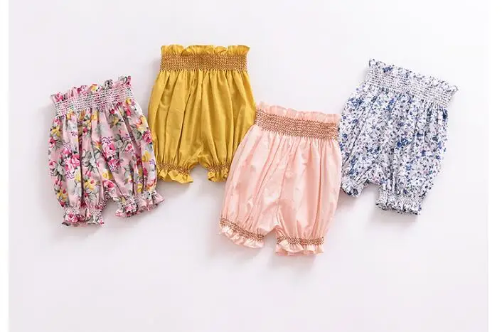 Летние тонкие повседневные шорты для девочек с цветочным принтом; Одежда для маленьких детей; Детские брюки; Штаны для маленьких девочек; Эластичные брюки