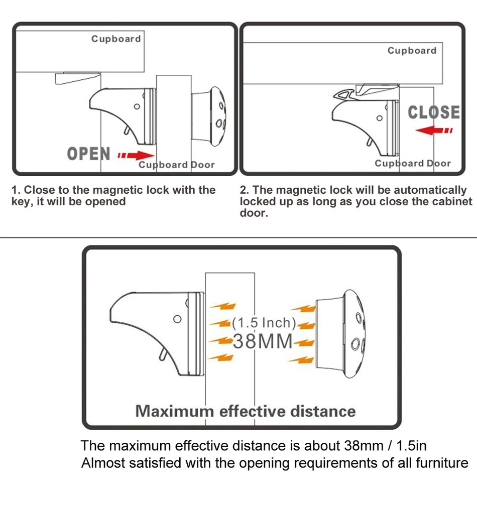 ②Магнитный замок будет автоматически заблокирован до тех пор, пока вы закроете дверь шкафа.