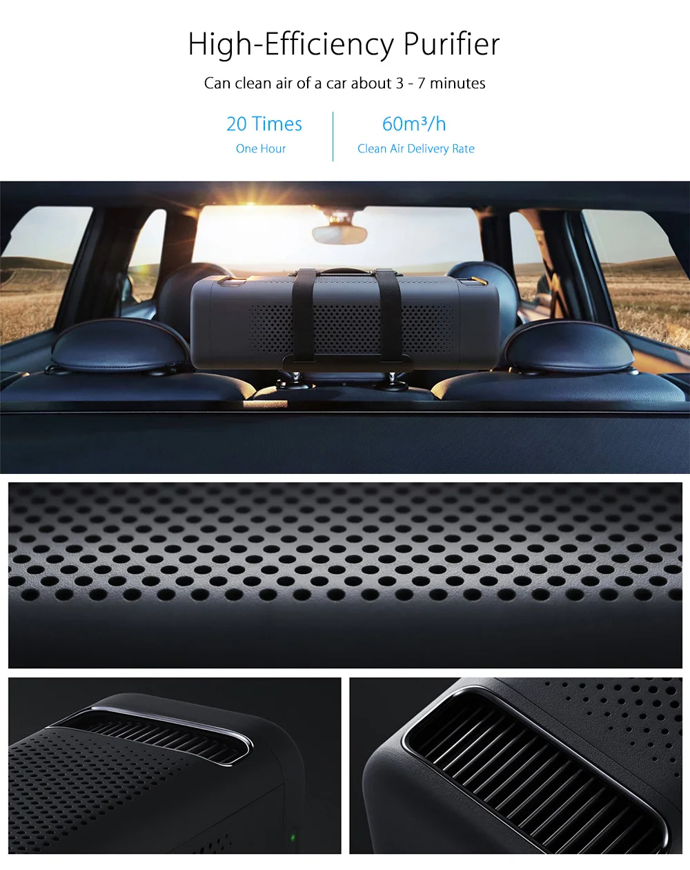 Оригинальный Xiaomi двойной вентилятор автомобильный очиститель автомобиля 5 В 60 квадратных метров в час привязывать на подголовник автокресло очищающее PM 2,5