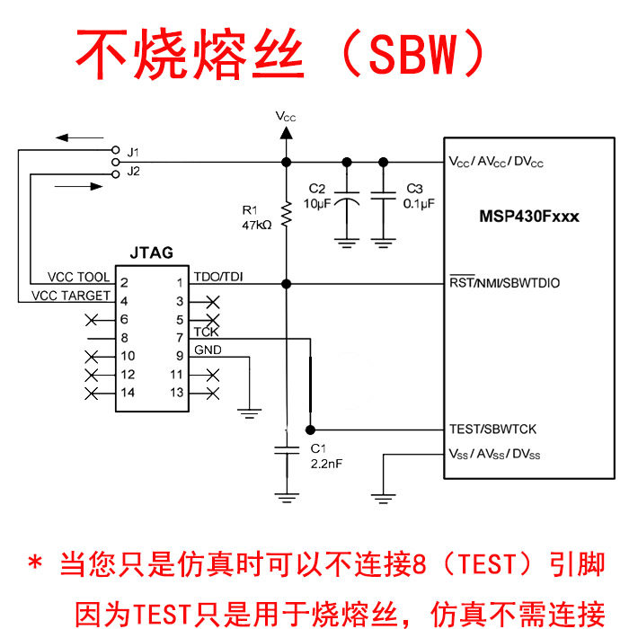 (因为 8 引脚TEST是用于烧熔丝,如果您不需要烧熔丝,您可以不用连接TEST引脚)