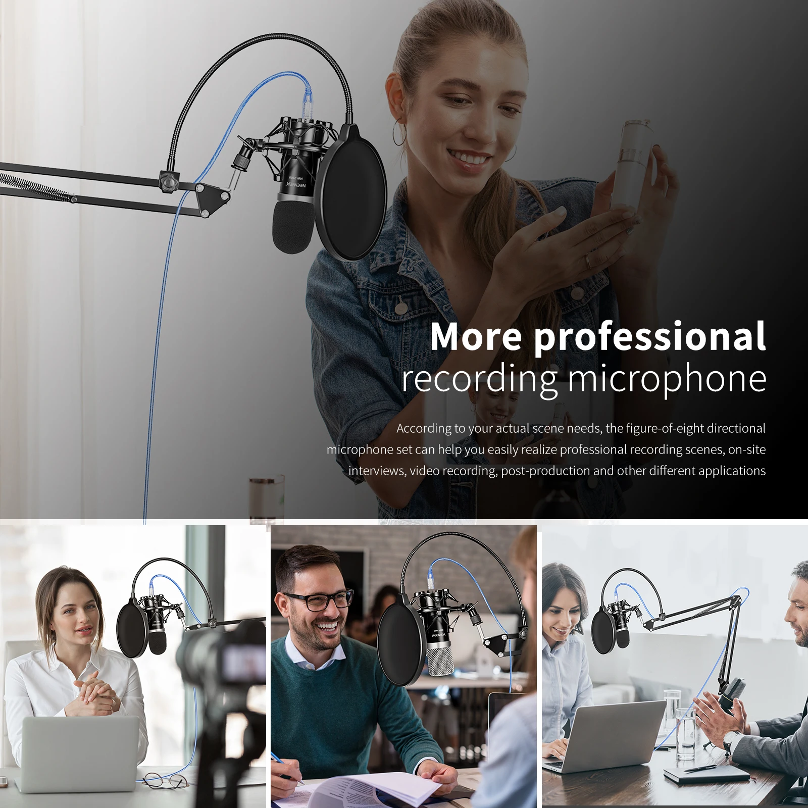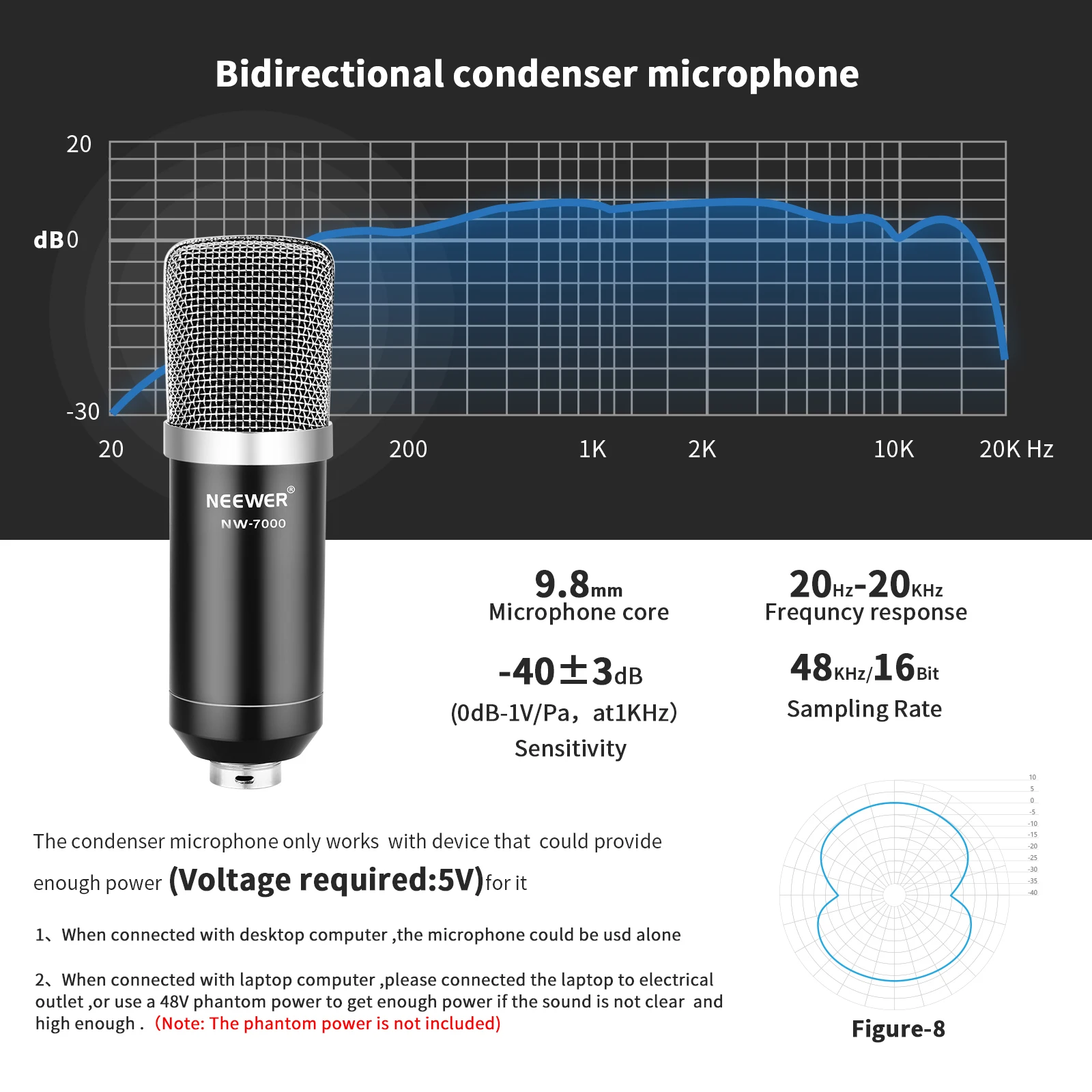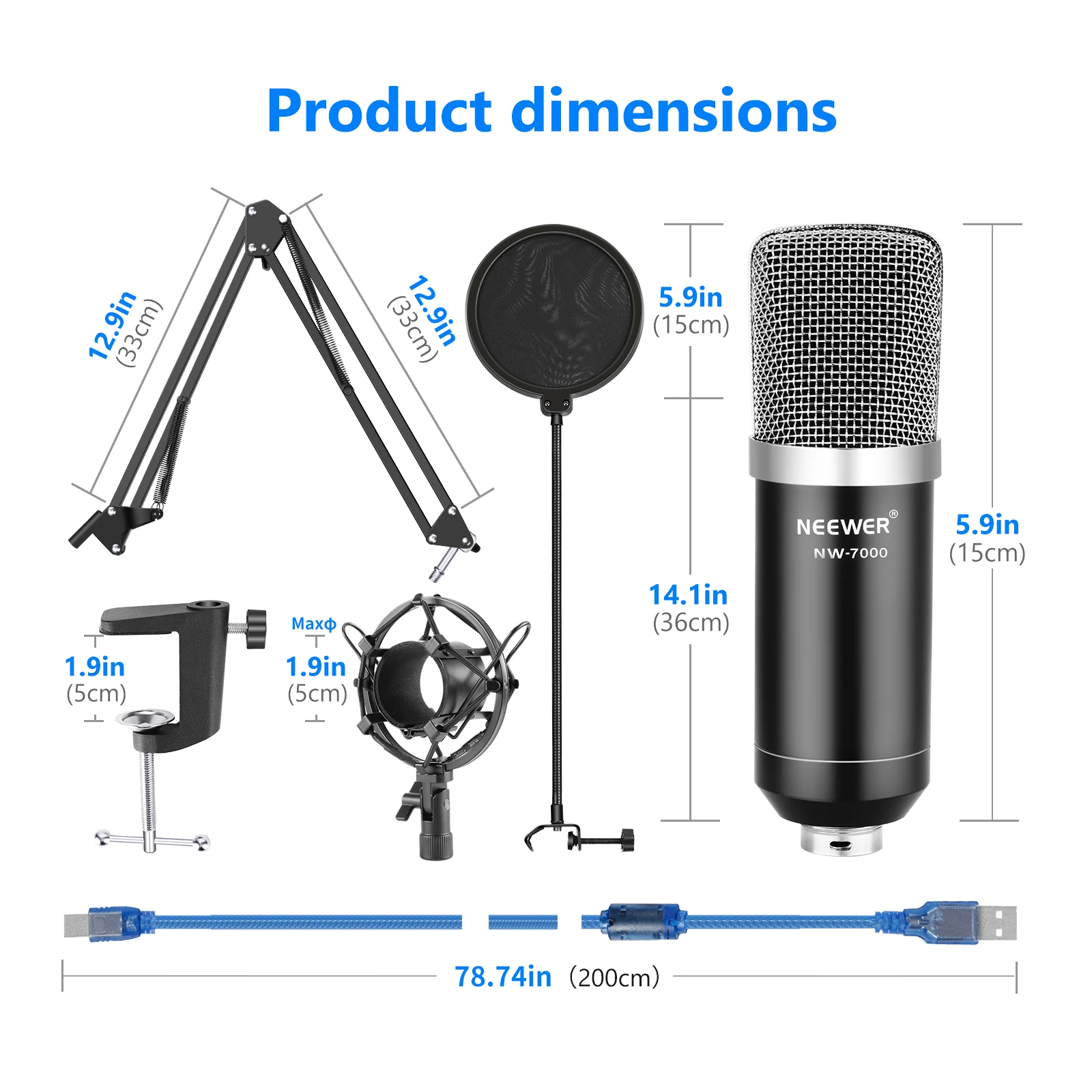 NW-7000 USB конденсаторный микрофон: использует кардиоидный пикап с конденсаторной капсулой, минимизируя фоновый шум и изолируя основной источник звука; Подключи и работай, не нужно устанавливать драйвер; идеальный выбор для вокала, инструментов, подкастов, личных записей и знакомых ситуаций
