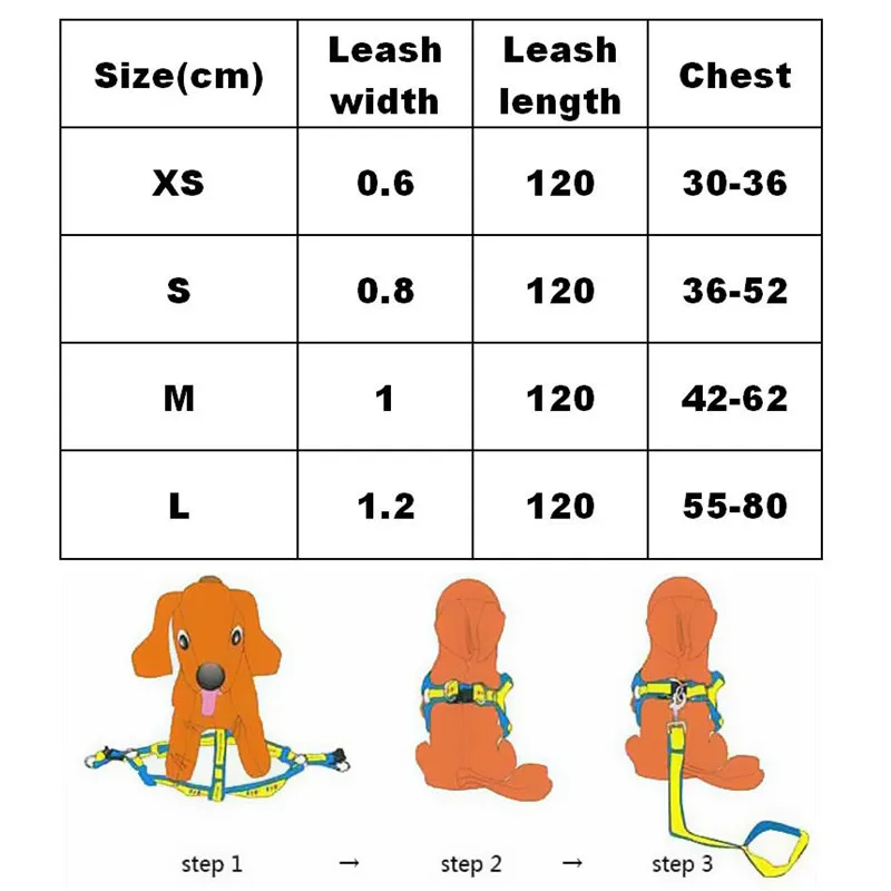 Обхват груди: 30-36 см, 36-52 см, 42-62 см, 55-80 см
