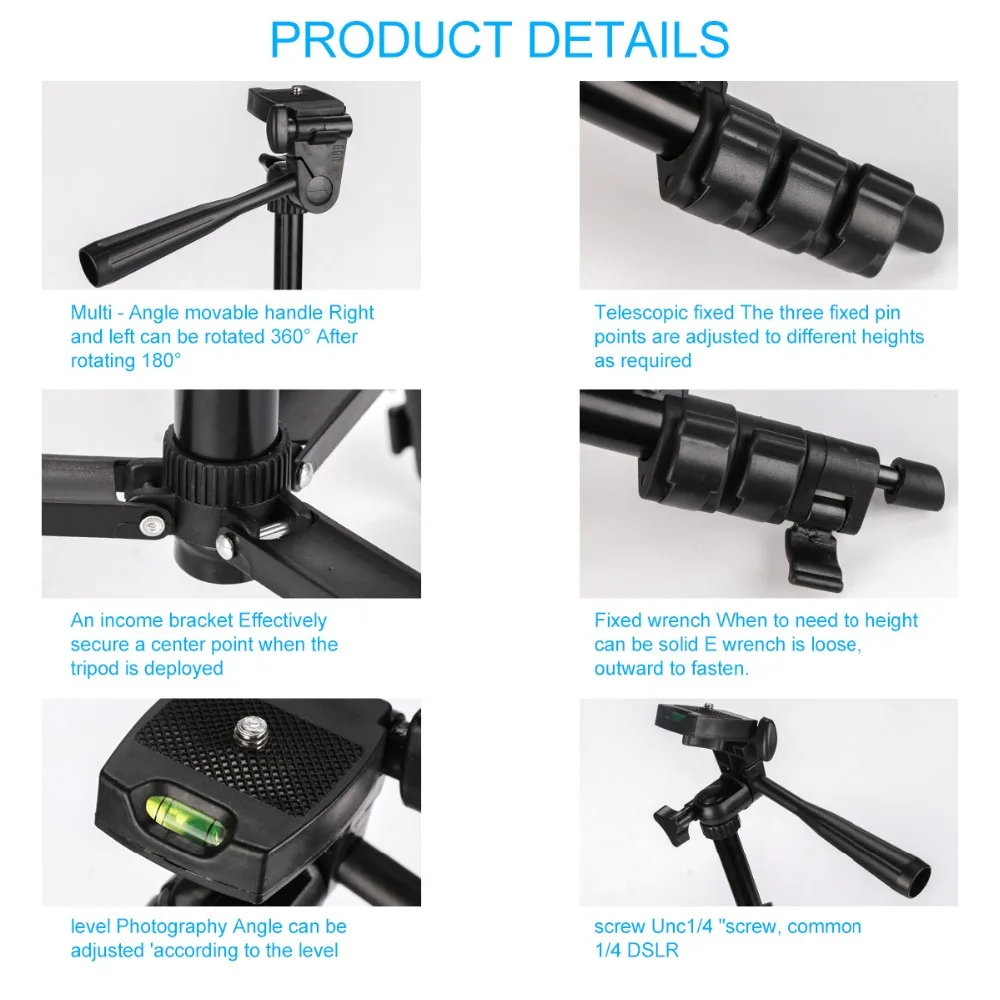 Независимо от того, являетесь ли вы новичком или профессиональным фотографом, вам понадобится устойчивый и надежный Штатив для многих из этих замечательных фотографий. Этот тренога путешественника с дизайном головки сковороды является лучшим выбором для съемки на открытом воздухе. Со встроенным пузырьковым уровнем, что делает ваш штатив идеально выровненным. С нескользящей резиновой стопой, она обеспечивает одиночную регулировку каждой ноги, обеспечивая более удобную обработку ноги.
