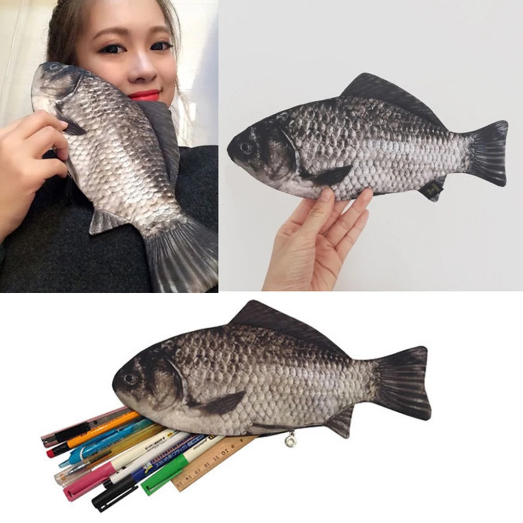 Популярная Серебряная ручка на молнии с изображением карпа и пенал для макияжа, Забавный редкий пенал310x140 мм Описание Характеристика: В комплект входит: 1 * косметичка