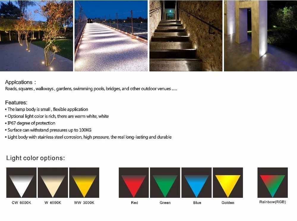 1. 3W Led подземный с IP67, дико использовать для всех видов вне двери светильник ing, таких как дорожный боковой светильник, квадраты светильник, дорожки светильник, сад светильник, мосты светильник и другие открытый Венера светильник ing