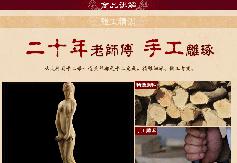 Деревянный материал: самшита Процесс скульптуры: круглая резьба Стиль: ретро ностальгия Моделирование: персонажи Размер: высота 15 см Количество: 1 шт. Теплое напоминание: изделия из дерева из-за его естественных характеристик, так называемые «Нет дерева без линий», иногда небольшие пятна, маленькое зерно, цвет и другие Естественные небольшие изъяны-это нормальное явление, мы избегаем в ключевых позициях, не влияет на общий внешний вид, Вы абсолютно уверены, перфекционист покупает с осторожностью, Чтобы не доставлять Вам ненужных хлопот на День Благодарения!