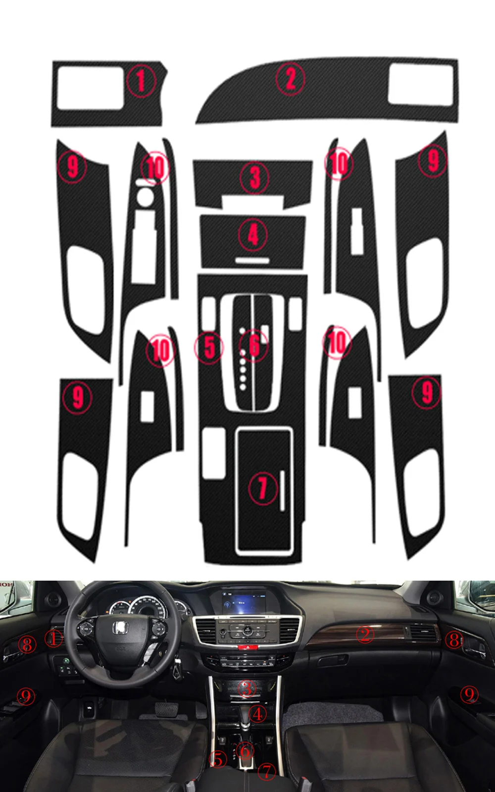 Совершенно новая Автомобильная внутренняя центральная консоль изменение цвета из углеродного волокна литье наклейки для Honda Accord 9th