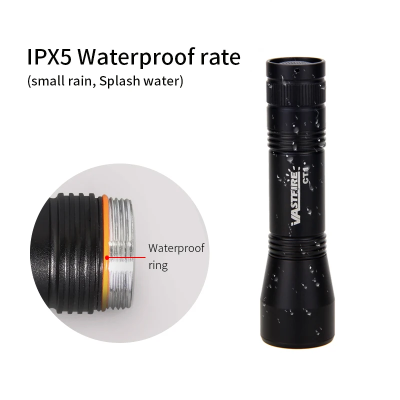 Лампа: T6 Яркость: 1000 лм Расстояние облучения: 300-500 метров 5 режимов переключения: высокий/средний/слабый/Стробоскоп/SOS Размер: 115 мм (самая короткая длина), 125 мм (самая длинная длина), 31 мм (диаметр головки), 23 мм (диаметр конца) Тип линз: оптическая линза для Глаз лягушки Функция масштабирования: растягивающийся зум Вес нетто: 50 г Рабочее напряжение: 3,7 В Цвет изделия: черный Цвет света: белый Цветовая температура лампы: 7500 K Материал изделия: алюминиевый сплав Тип переключателя: кнопочный переключатель в конце фонарика Способ укладки: прямой или перевернутый Поверхность: износостойкое анодирование Источник питания: одна батарея 18650 (не входит в комплект) Водонепроницаемость: IPX5 (небольшой дождь, брызги воды) Упаковка включает: 1 * мини-фонарик
