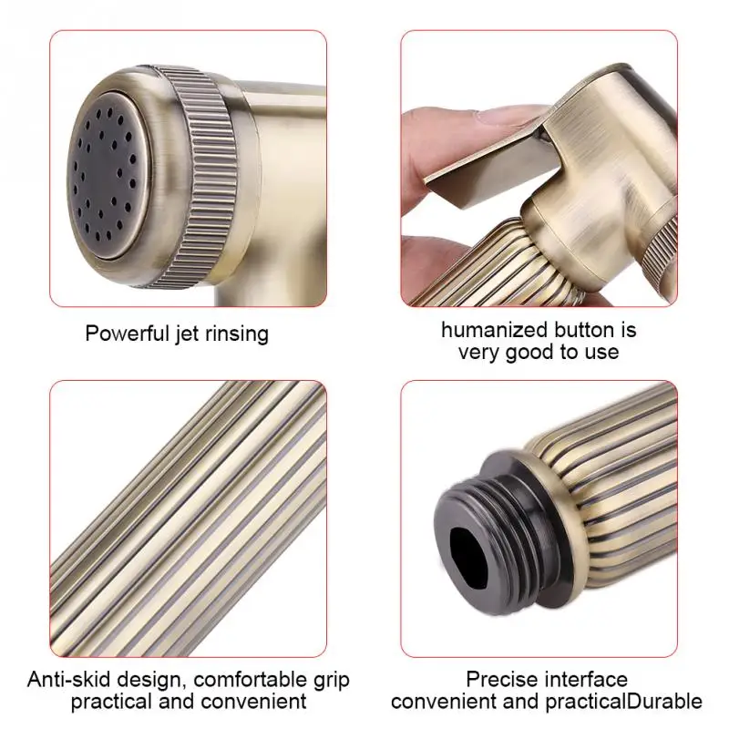 Этот античный биде-распылитель для туалета-лучший выбор для вашей повседневной личной гигиены. Наш Модернизированный дизайн может гарантировать герметичность, латунная конструкция делает этот ручной биде спрей более прочным и солидным, регулируемая функция потока воды приносит вам удобный опыт самоочистки.