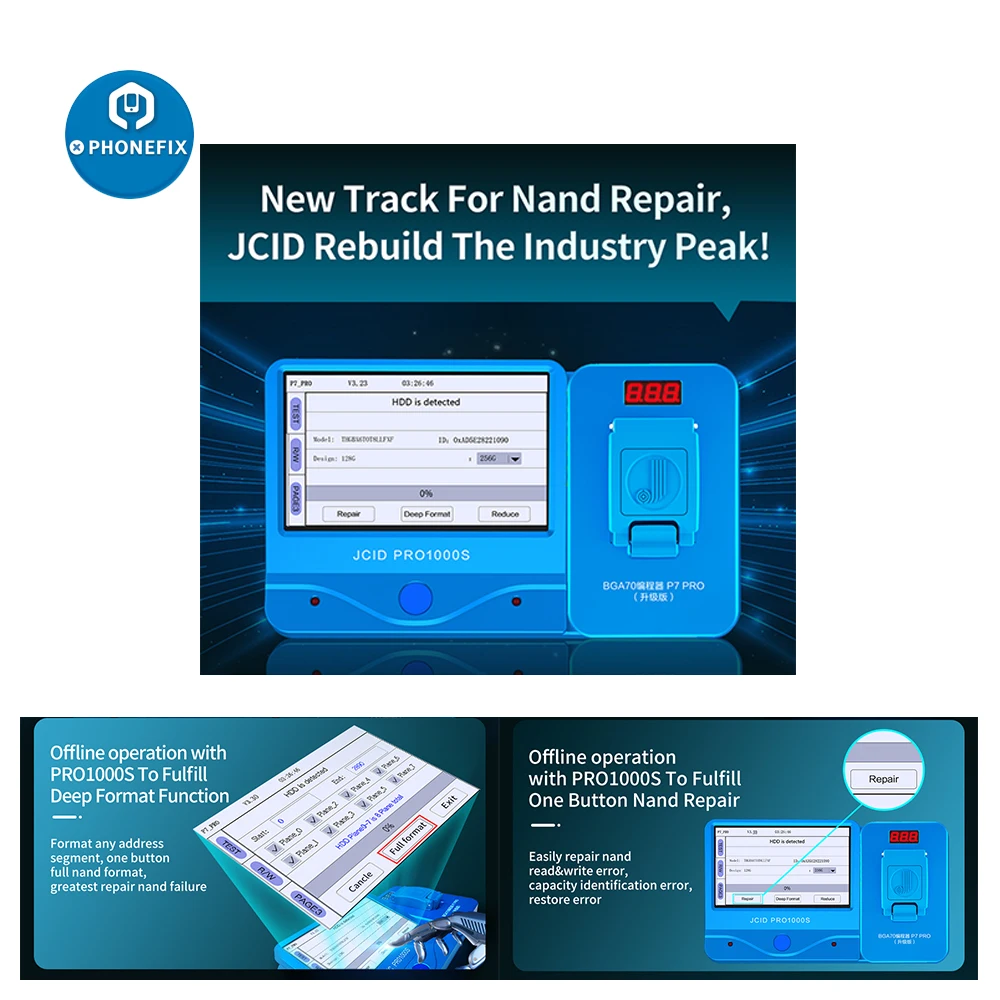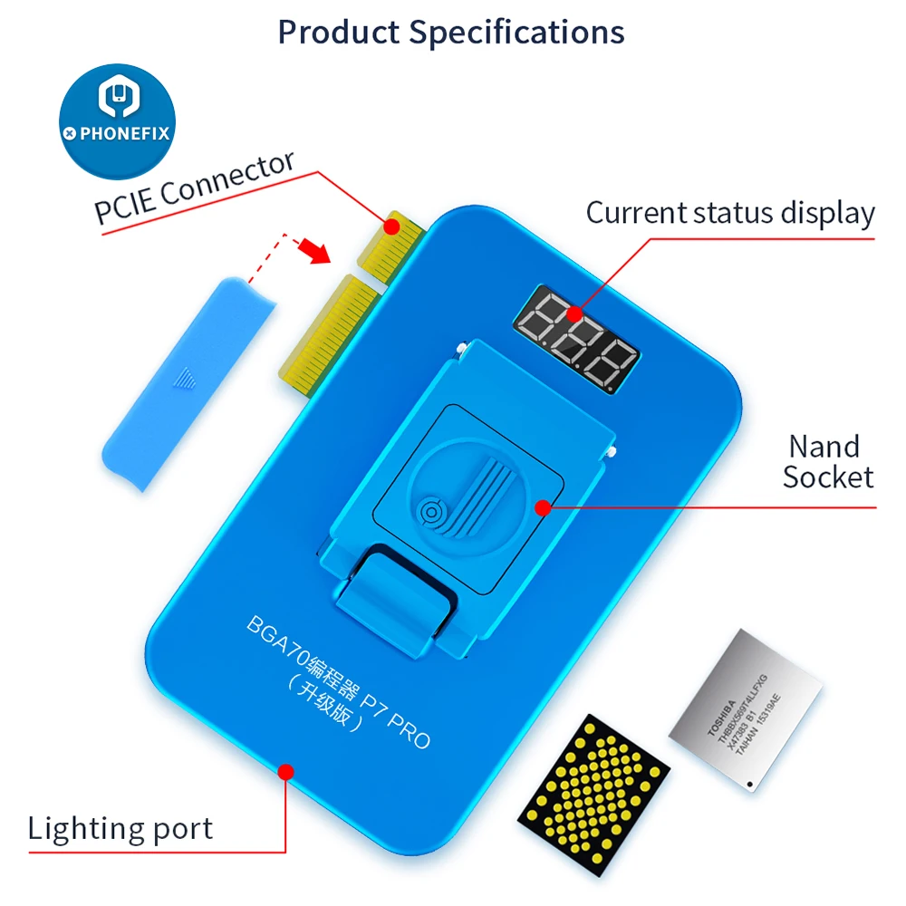 JC P7 PCIE Nand тестовый прибор-это революционный инструмент для ремонта ошибок NAND для iPhone 6S/ 6S Plus / SE / 7/ 7 Plus/ iPad Pro, функция NAND Flash Format, резервное копирование данных раздела (*.bin file), проверьте данные раздела и выполните анализ данных (не файловые данные, только данные раздела).