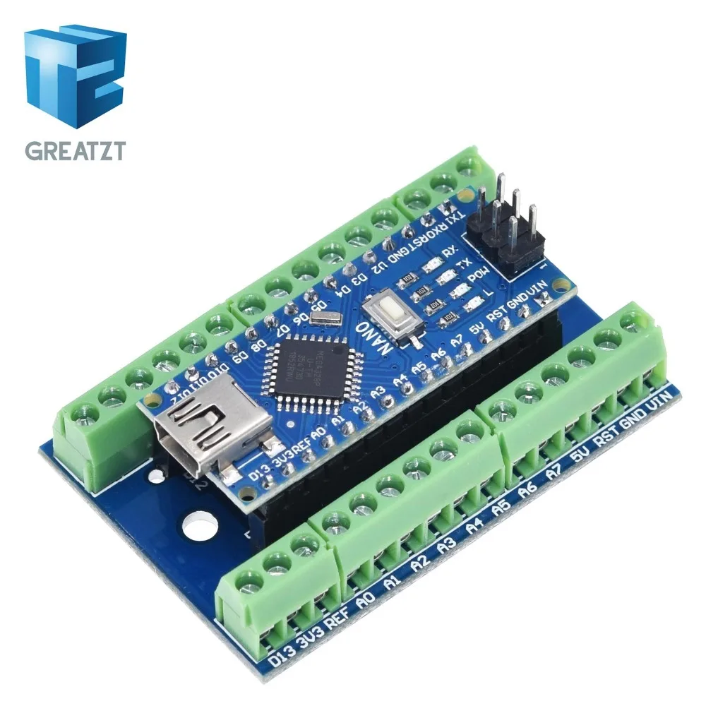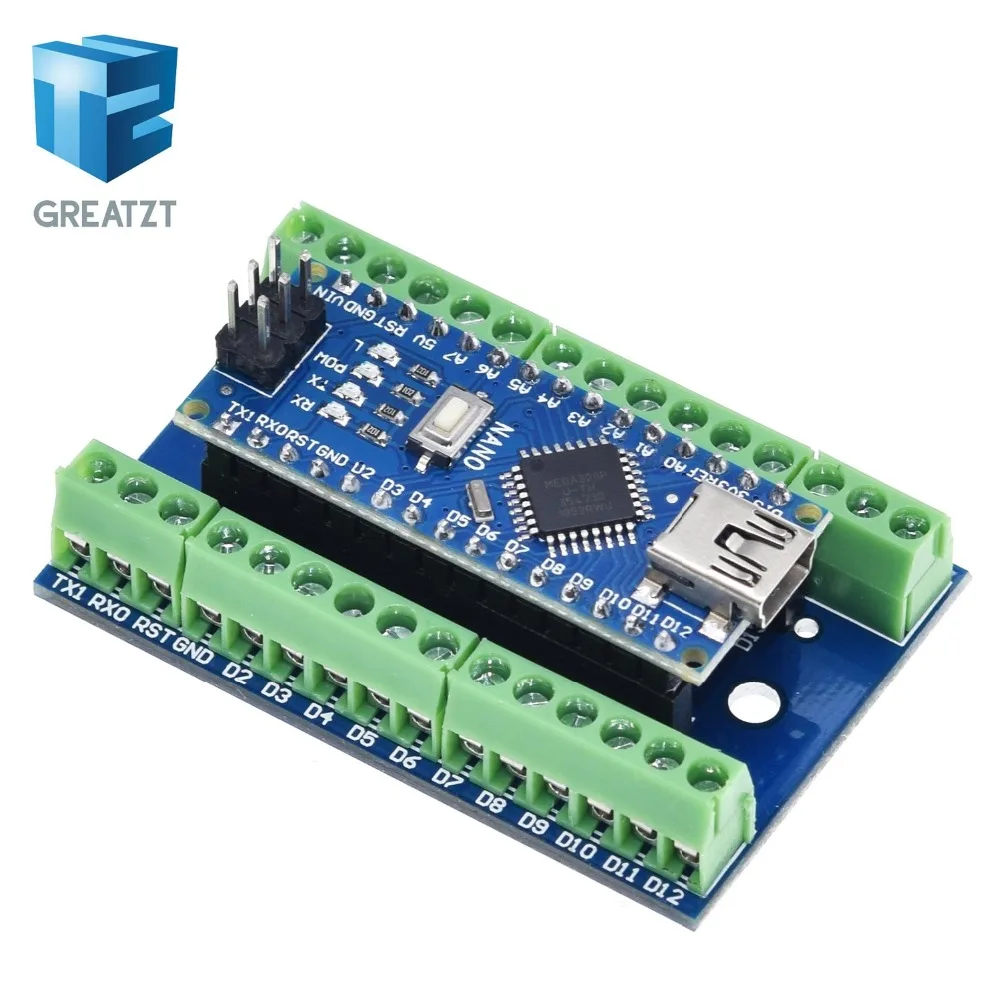 Это клеммный адаптер для arduino Nano.Он подходит для arduino Nano версии 3,0,Однако вы все еще можете использовать этот адаптер для более старой версии(Просто помните, что A0-A7 находятся в обратном порядке).