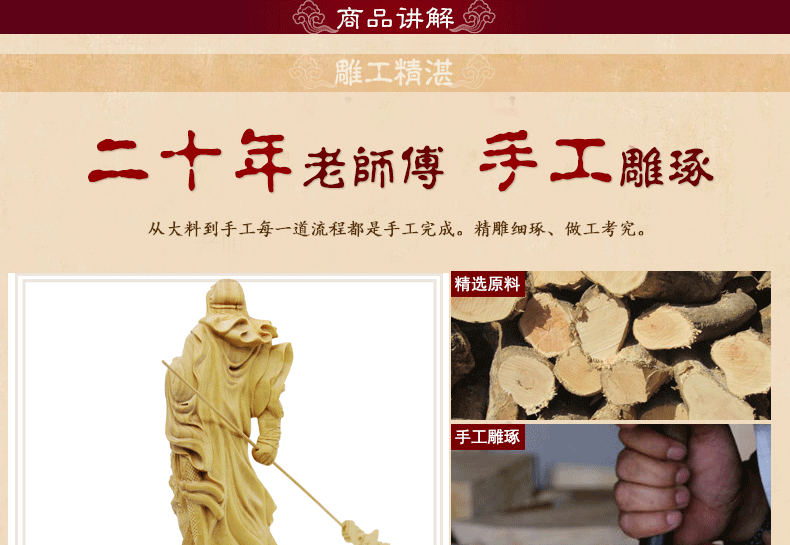WSHYUFEI листовка boxwood резьба по дереву ручные украшения ювелирные изделия резьба по дереву Guan Gongwu Бог фигура Будда Ремесла