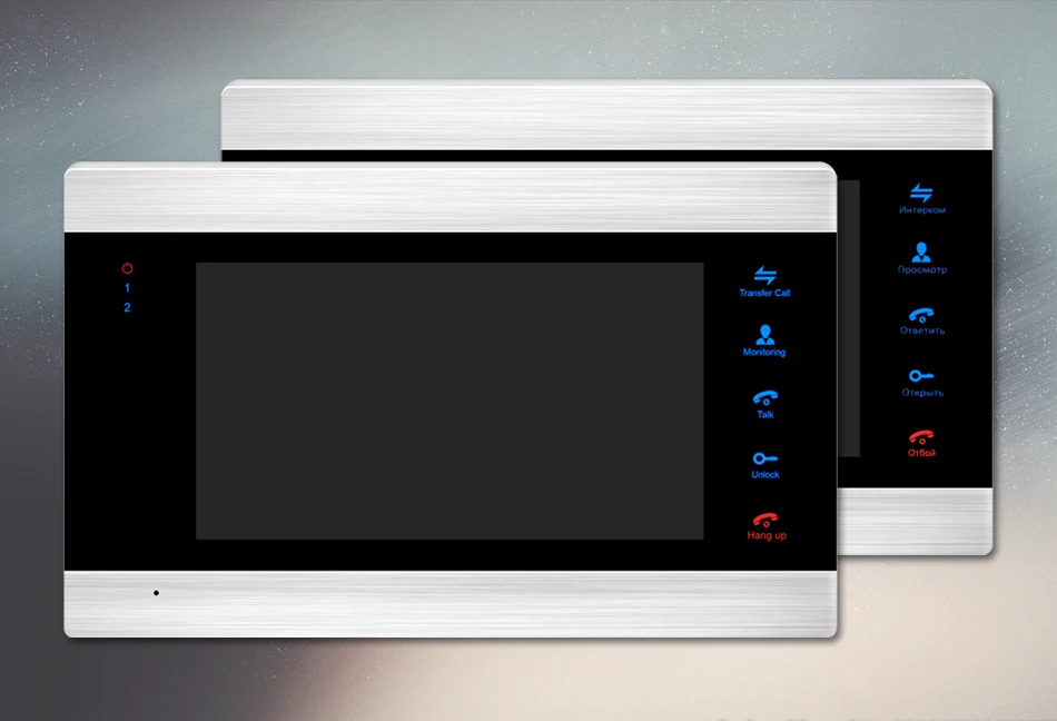 Внутренний монитор изготовлен из акриловой проволочной панели и tft-дисплея, очень модный дизайн, он использует передовую сенсорную технологию. Чувствительный синий и красный светильник.