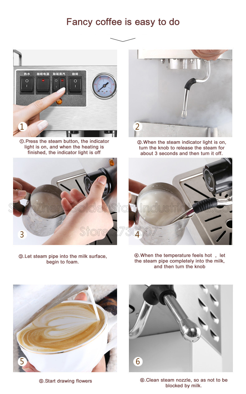 ⑥. Очистите паровое сопло, чтобы не быть заблокированным молоком.