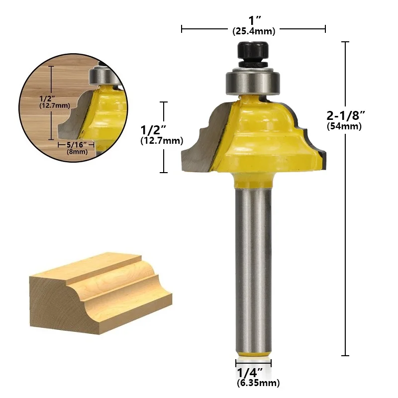 Вырезанные молдинги, рамки для картин, края стола и многое другое в красивом двойном римском стиле. Два Твердосплавных фрезы с направляющей Шарикового подшипника. 1/4 "хвостовик. 1/2 "Высота резца, 5/16" Глубина резца.