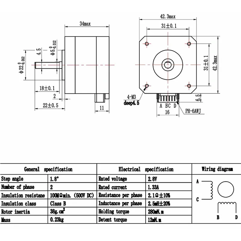 1x шаговый двигатель Nema 17