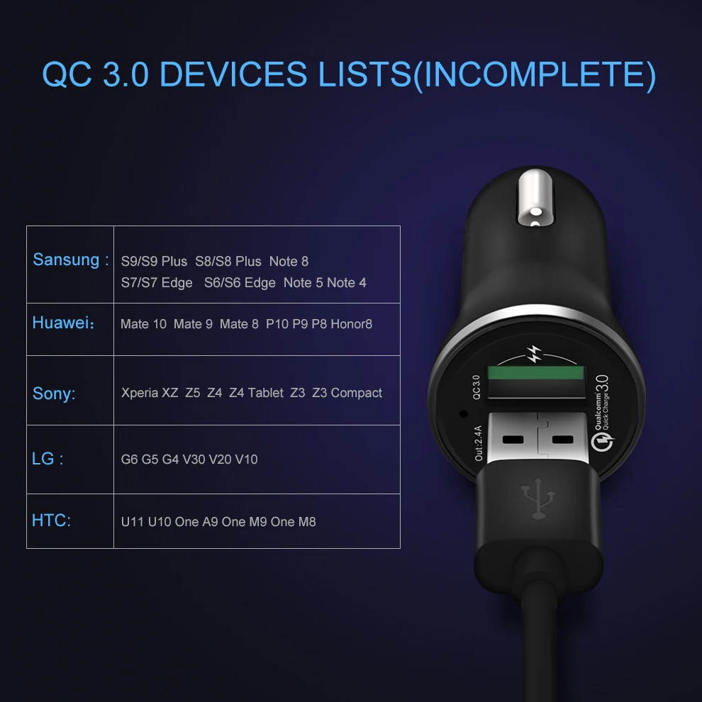 Название: автомобильное зарядное устройство QC 3,0 Dual USB