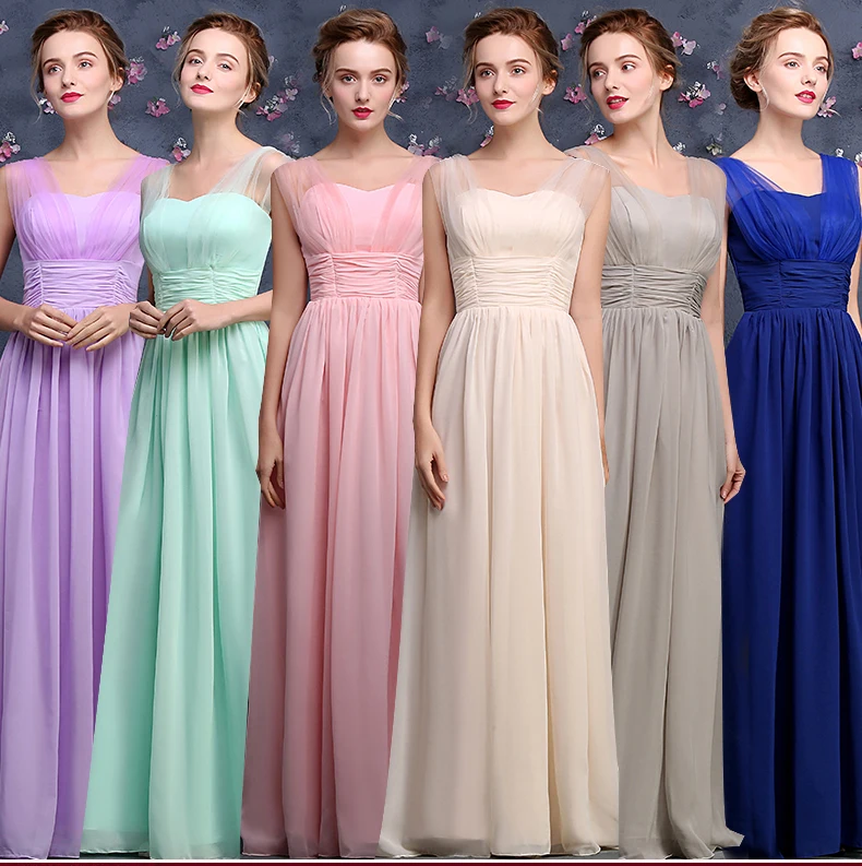 A088 длинное платье подружки невесты мятного, зеленого, розового цвета, на заказ, фиолетовое, королевское, голубое шифоновое свадебное платье, торжественное платье, милая память