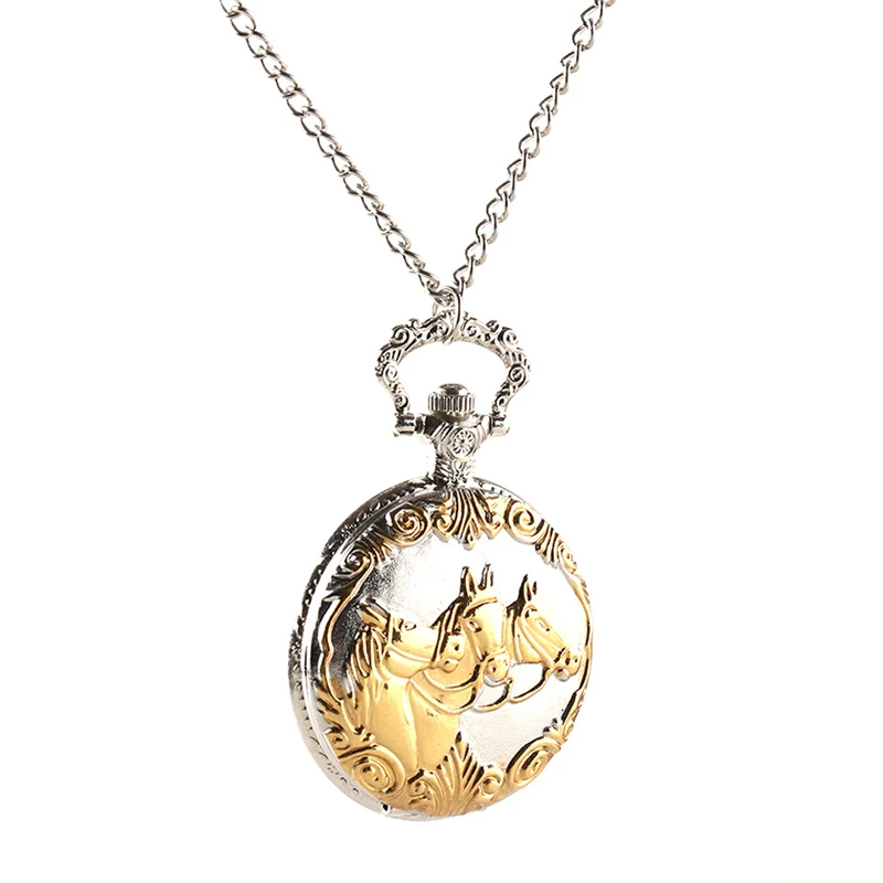 Классические мужские часы с тремя лошадьми, кварцевые карманные часы с цепочкой, антикварное ювелирное изделие, подвеска, ожерелье из цельного металла, alchem