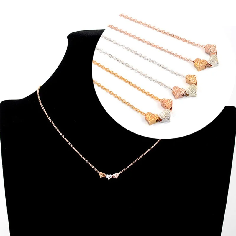 Крошечные 3 ожерелья с сердечками, золото, серебро и розовое золото сердца, цепочка Причудливая, простая, день рождения, свадьба, подружка невесты