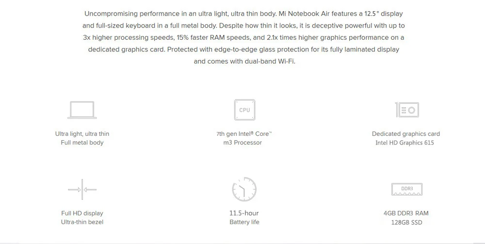 Xiaomi Air 12 ноутбук 12,5 дюймов Windows 10 домашний 7-го поколения процессор Intel Core m3-7Y30 двухъядерный 1,0 ГГц 4 Гб ОЗУ 128 Гб SSD Bluetooth 4,1 тип-c Китайская версия: