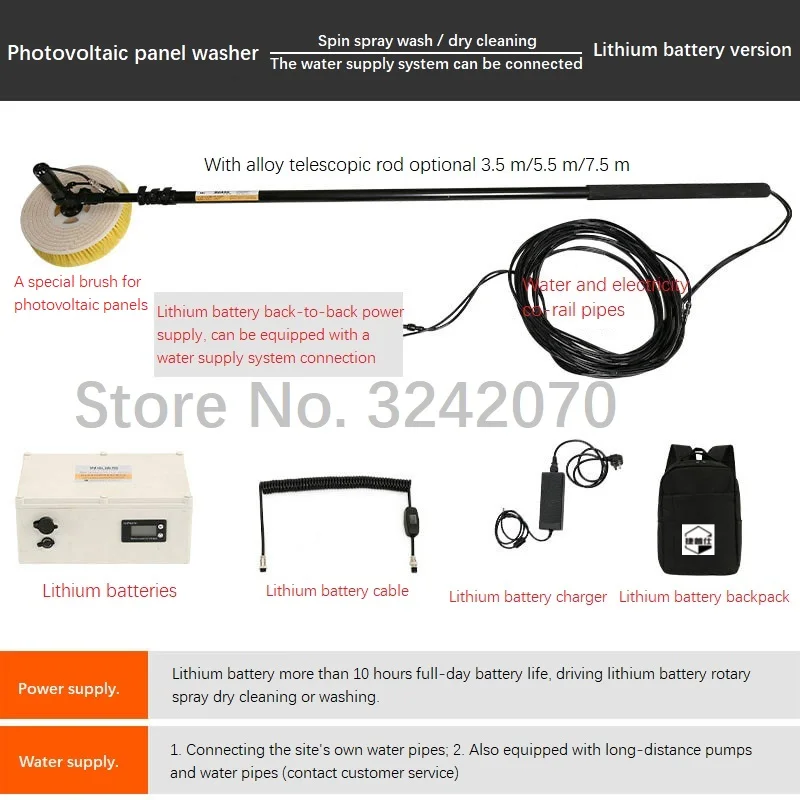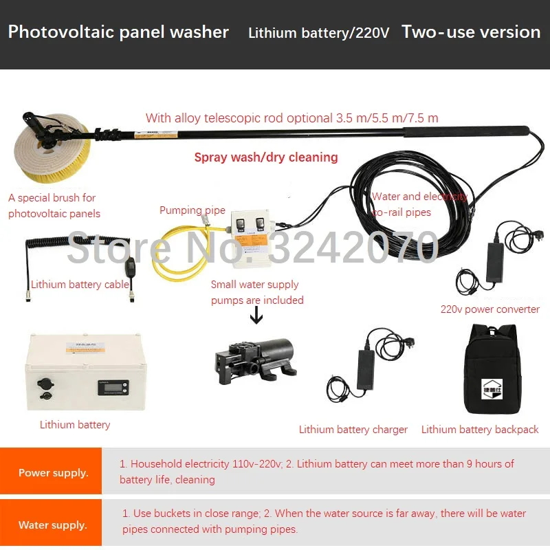 Этот продукт обеспечивает непрерывную работу с литиевой батареей, вам также необходимо решить проблемы с подачей воды и наши трубы оборудования, подключенные для достижения водоснабжения, затем вы можете купить водяные насосы с литиевой батареей в нашем магазине, чтобы достичь короткого расстояния около 50 метров водоснабжения; Вы также можете выбрать высокомощные насосы 220 В для очистки окружающей среды на большие расстояния для достижения 100-200 метров дальних потребностей водоснабжения;