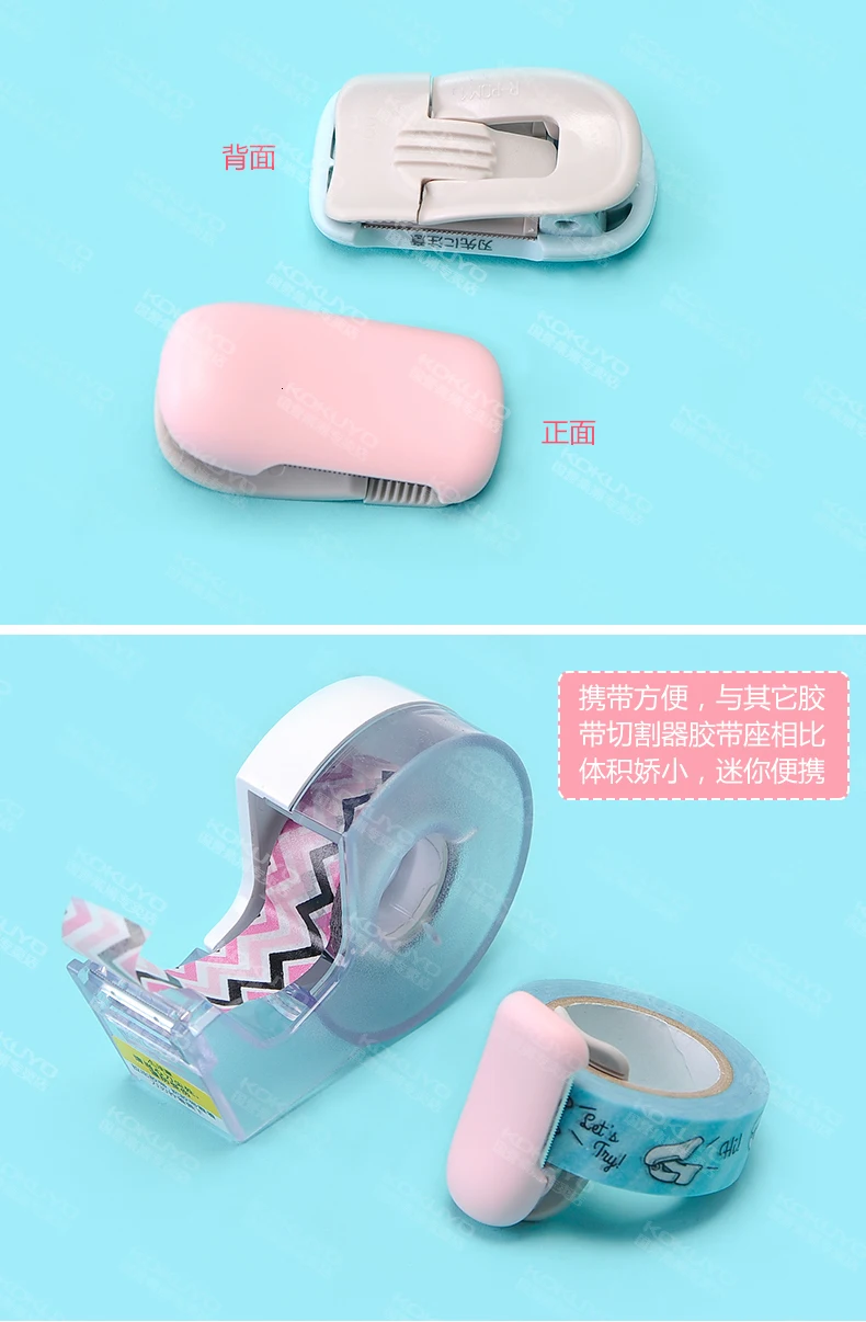 Nmae:2 размера, милые японские канцелярские принадлежности, мини Васи, диспенсер для скотча Kawaii, портативный пластиковый Скотч для офиса, резак, школьные принадлежности