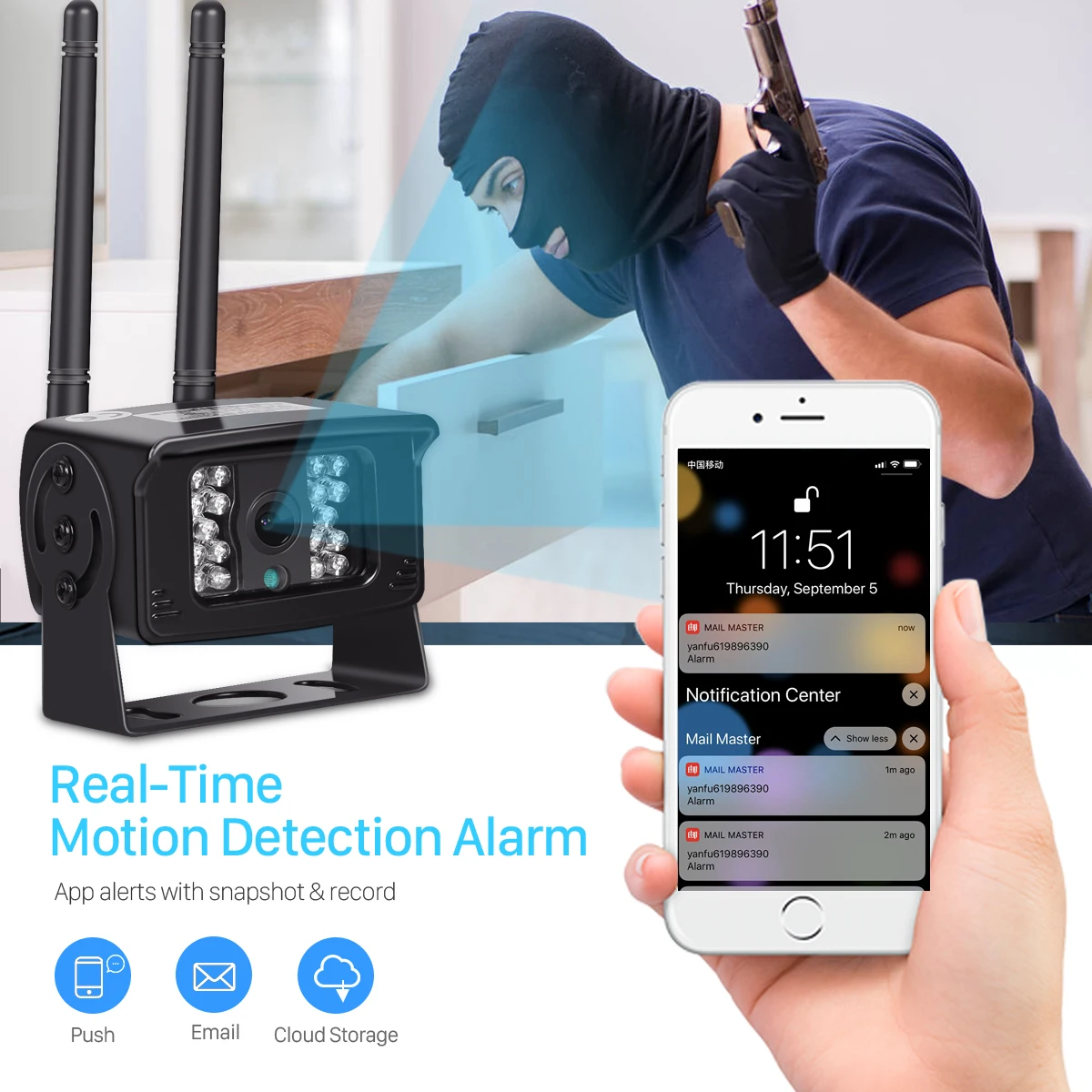 Технология обнаружения движения, отправьте уведомление в приложение CamHi при обнаружении аномального движения, одновременно записывайте короткое видео.