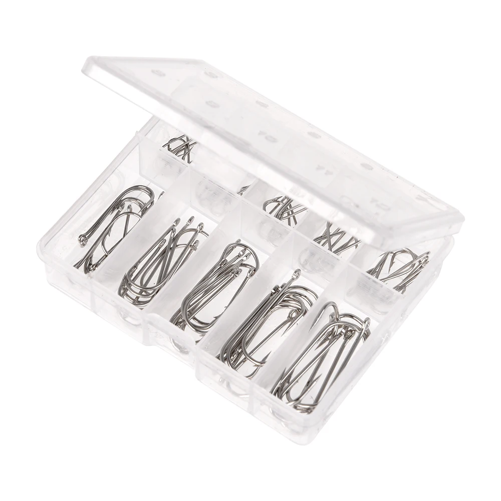 Включает 100 шт. рыболовных крючков разного размера от 3 # до 12 #.