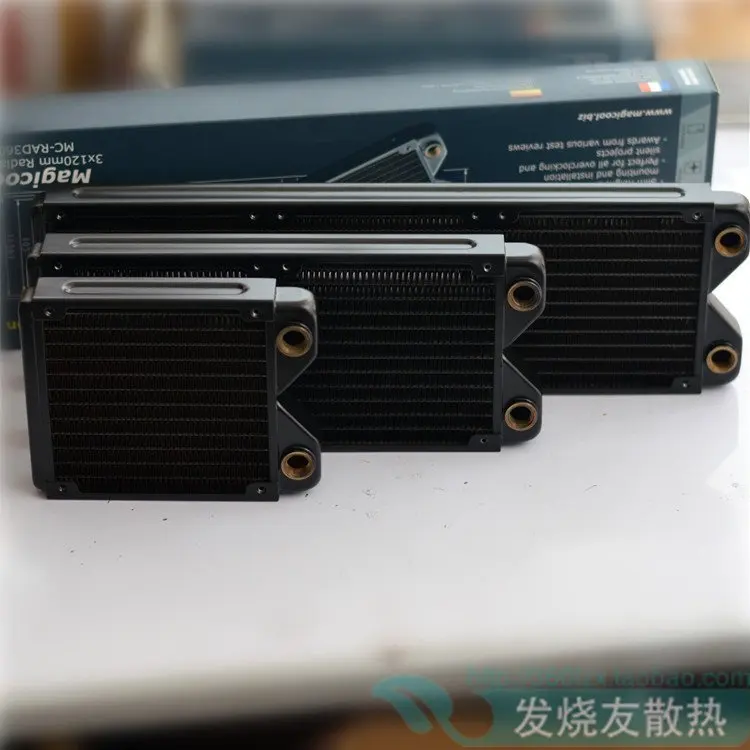 Конструкция радиатора высокой плотности, минимальная толщина для реализации производительности теплообмена. Высокая жидкость и дизайн воздушного потока Медный ребро, оптимизированный для бесшумных вентиляторов Идеально подходит для всех разгона и бесшумных проектов Костюм для небольших чехол Характеристики: 120 мм: 120 мм x 155 мм x 27 мм (не входит в комплект поставки) Материалы: латунь (латунная камера для воды и медный плавник) Цвет: черный Вес брутто: 406 г Размер: 120*155*27 мм Состав: плоская трубка * 12 Вход/выход: резьба G1/4'' 240 мм: 120 мм x 275 мм x 27 мм (не входит в комплект поставки) Материалы: латунь (латунная камера для воды и медный плавник) Цвет: черный Вес брутто: 621 г Размер: 120*275*27 мм Состав: плоская трубка * 12 Вход/выход: резьба G1/4'' 360 мм: 120 мм x 393 мм x 27 мм (не входит в комплект поставки) Материалы: латунь (латунная камера для воды и медный плавник) Цвет: черный Вес брутто: 806 г Размер: 120*393*27 мм Состав: плоская трубка * 12 Вход/выход: резьба G1/4''