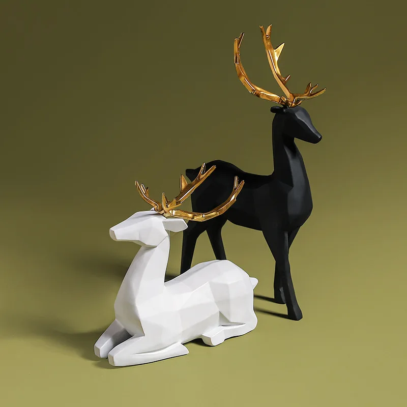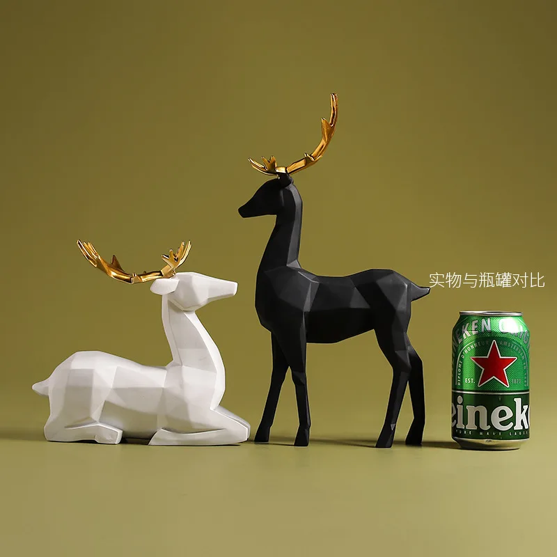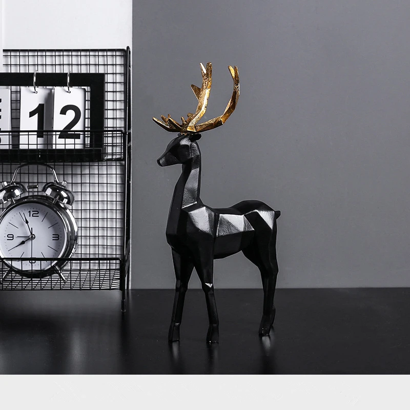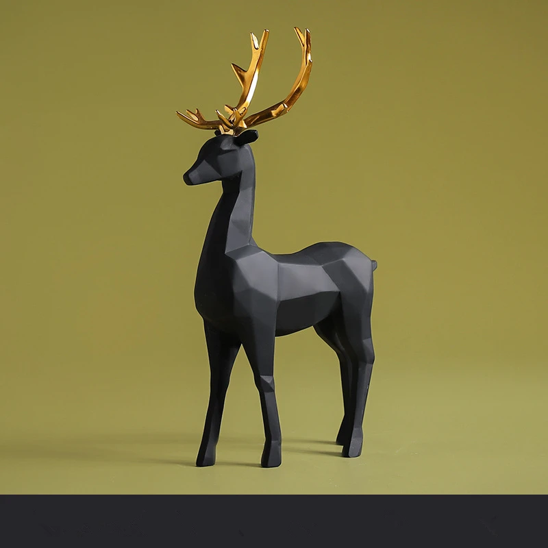 BUF современная абстрактная маленькая статуя черного оленя, украшения из смолы, украшения для дома, аксессуары, подарок, Геометрическая скульптура оленя из смолы