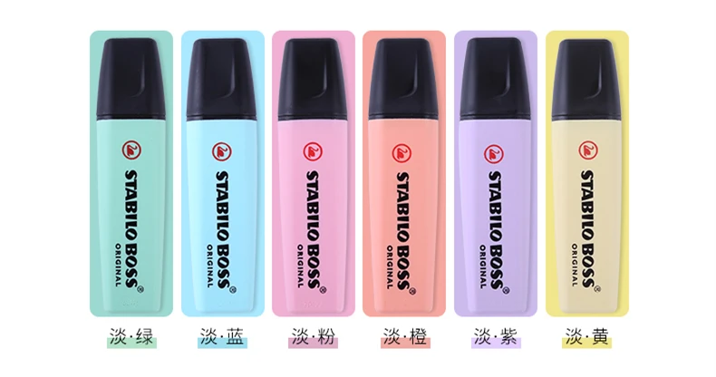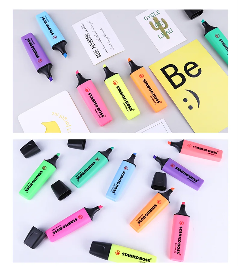 Stabilo Boss оригинальные и пастельные хайлайтеры Ультра мягкий наконечник зубила 2-5 мм Большой резервуар для чернил для сверхдлинного освещения 4 часа Anti-Dry-Out Технология Светильник с пигментными чернилами Не размазывает чернила струей печати или большинства рукописных текста Доступные цвета: Оригинал Желтый Красный Розовый Сиреневый Лаванда Оранжевый Зеленый светильник Темно-зеленый Синий светильник Пастель Молочно-желтый Кремовый персик Розовые румяна Подсказка мятного цвета Сиреневая дымка Прикосновение бирюзы