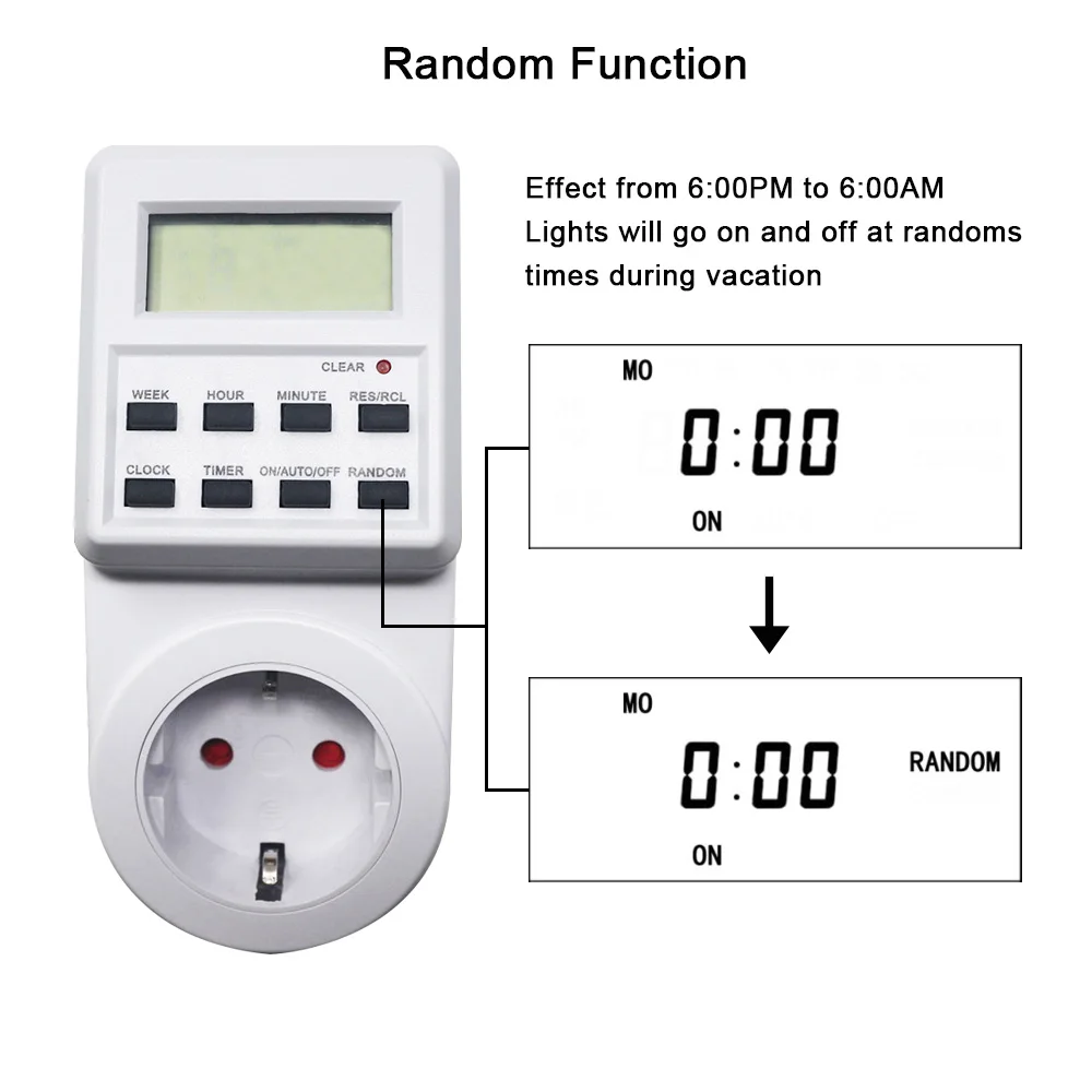Штепсельная Вилка европейского стандарта, таймер розетка экономить энергию 24/7 дней цифровой таймер со случайными и летнее время неделя час программируемый розетки переменного тока 230V
