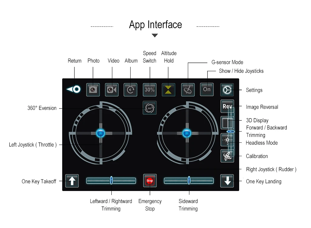 ● Режим g-датчика позволяет дрону перемещаться в соответствии с движением вашего телефона