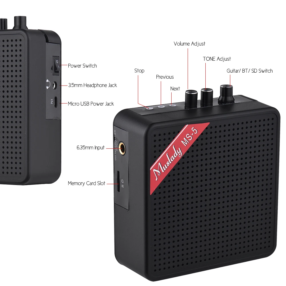 5 Вт компактный гитарный усилитель, Высококачественный ABS + PC материал, супер легкий и портативный.