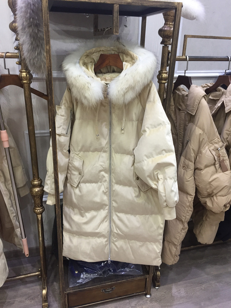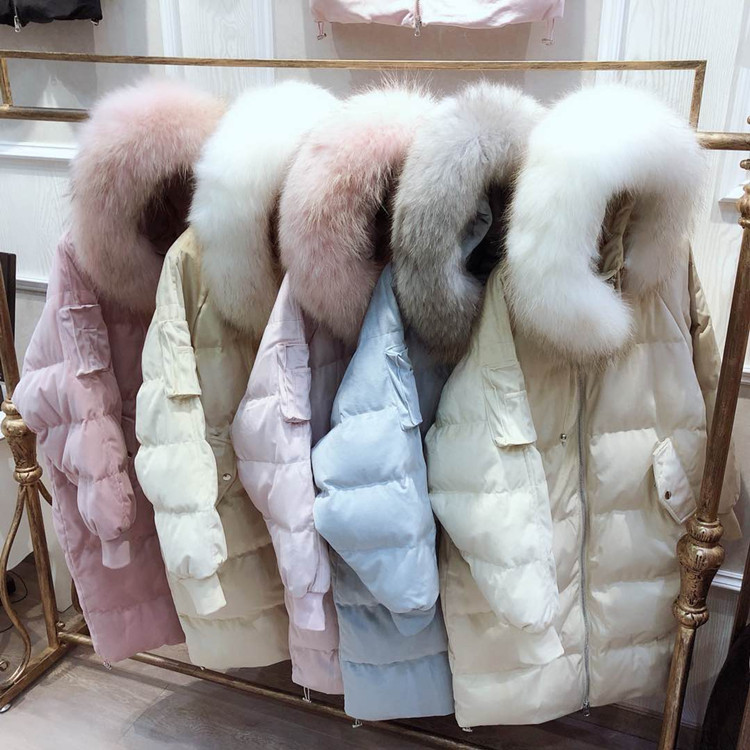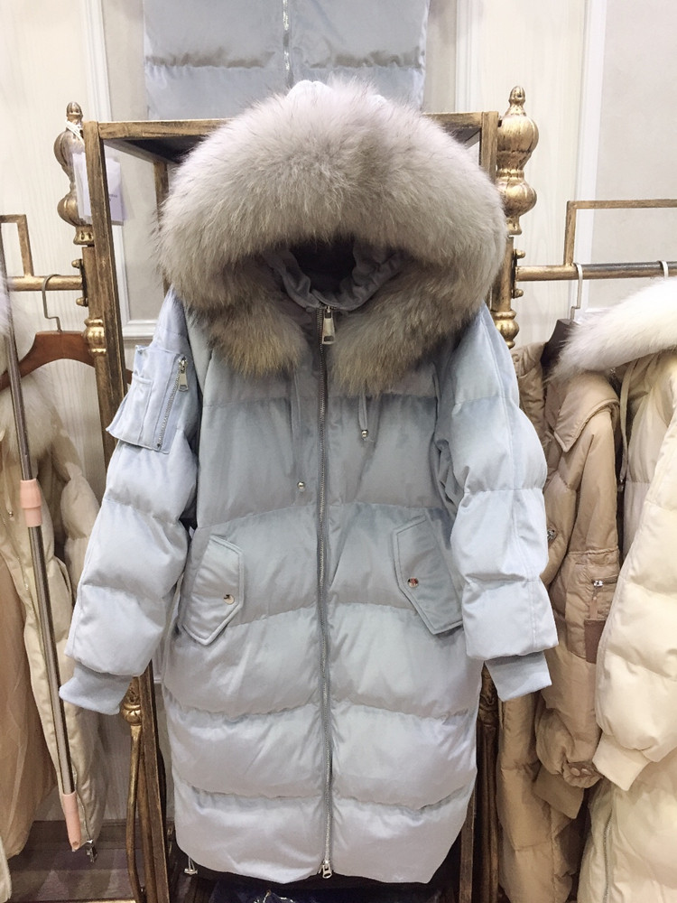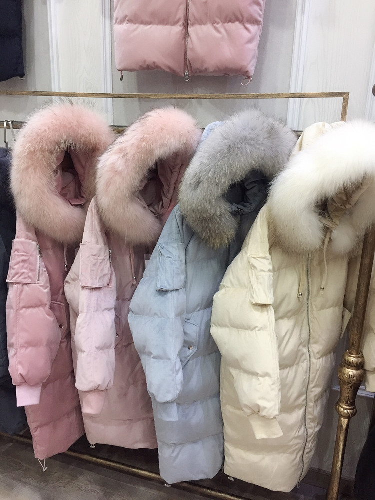Пуховые парки 2018 зимняя куртка Для женщин Белые куртки-пуховики для женщин натуральный мех енота длинный толстый с капюшоном женские пальто