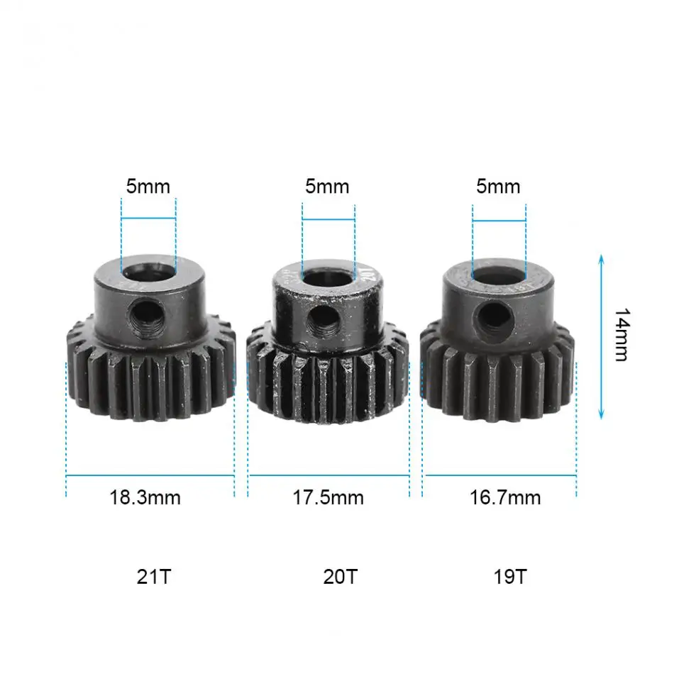 Подходит для 1/8 RC автомобилей с 5 мм валом. Прочная металлическая конструкция для длительной работы. Защита от ржавчины на поверхности зубчатых колес. Каждый мотор ведущая шестерня оснащен представляет наиболее продаваемые наборы винтовых. Фиксированные винтовые отверстия для легкой и удобной установки.