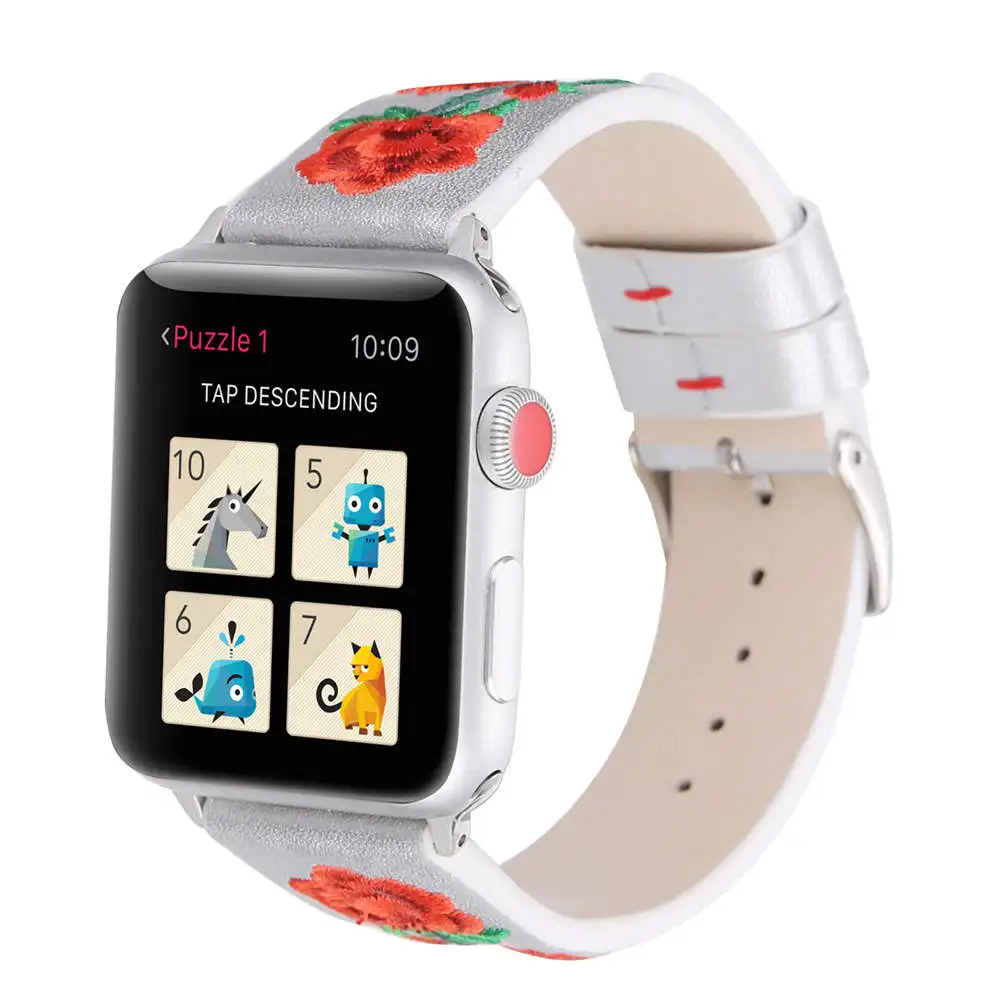 Браслет с красной розой для Apple Watch, ремешок из натуральной кожи для серии 1/2/3 iWatch, сменный ремешок 38/42 мм