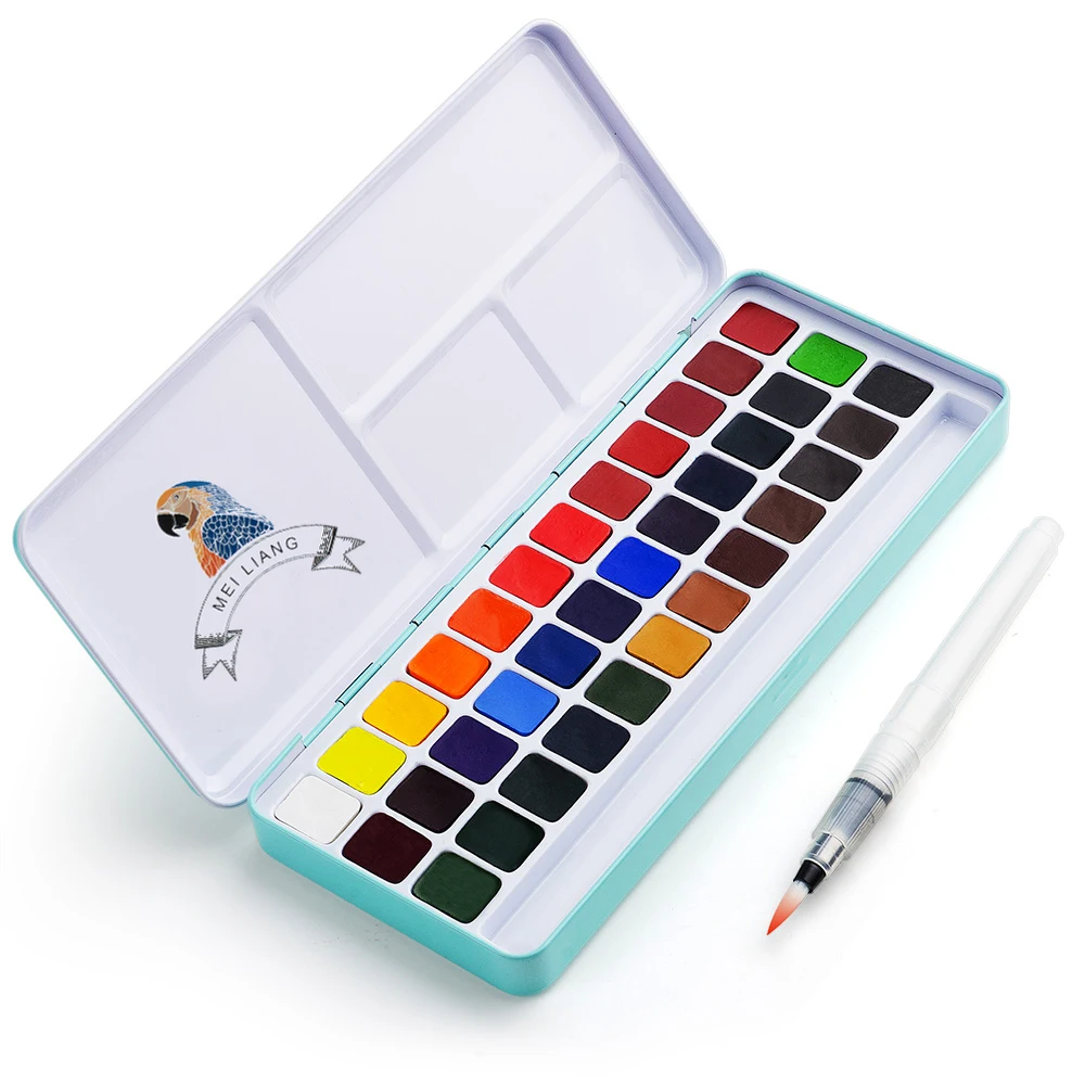 MeiLiang акварельные краски в наборе, 36 ярких цветов в карманной коробке с металлическим кольцом и бонусом