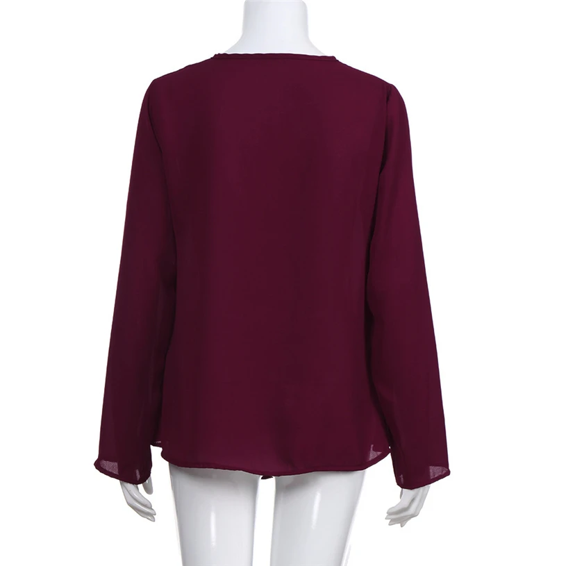 Модные женские осенние Однотонные блузки повседневные свободные топы с v-образным вырезом рубашки с длинными рукавами