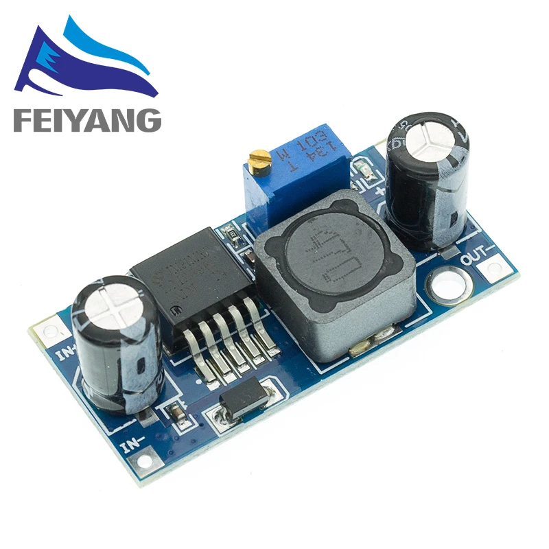 LM2596 LM2596S DC-DC 4.5-40V adjustable step-down power Supply module Name : LM2596 DC-DC Buck moduleInput voltage :4V ~ 35VThe output voltage : 1.23V ~ 30VOutput Current :3A( Max)Conversion efficiency:92%( MAX )Output ripple: <30mVSwitching frequency: 150KHzWorking temperature: -forty Five~ +85Size :43mm * 21mm * 14mm(Long*Width*Hight)Features:1. the range of input voltage: 3.2 V to 40 V dc (input voltage must be higher than to the output voltage of 1.5 V above. Can't booster)2. the range of output voltage: 1.25 V dc to 35 V voltage adjustable, high efficiency (92%) largest maximum output current is 3A. Instructions:1. Power (3-40V), power indicator light, the module is working properly. 2. Adjust the blue potentiometer knob (clockwise rotation generally boost,counter-clockwise rotationTurn down) and reach with a multimeter to monitor the output voltage required voltage. Note: Current work long hours is recommended for use in less than 2.5A, while adding bulkHeat sink (10W output above),because it is the step-down module, in order to ensure stable output Set,please keep the minimum 1.5Vdifferential.