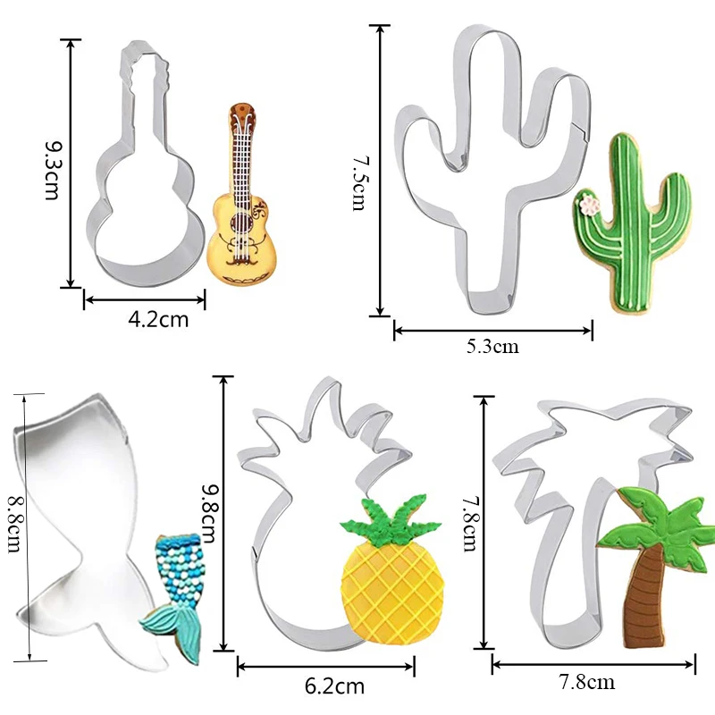 100% новое изделие высокого качества. Без запаха, без приклеивания, легко чистится Это прочный, хорошо сделанный набор формочек для печенья/формочек для печенья, хорошее качество для изготовления печенья, отлично подходит как форма для блинов,Или для резки теста печенья, помадки, мягких фруктов, хлеба, сэндвичей, сыра, шоколада, яиц или крафтовой глины. Сделай Сам с вашими детьми, сделайте вашу еду более веселой! Идеально подходит для: печенья, торта, пищевых украшений на Гавайских тропических вечеринках или летних вечеринках. Отлично подходит как форма для блинов, так и для резки теста для печенья, помадки, мягких фруктов, хлеба, сэндвичей, сыра или поделок из глины на летних вечеринках, пляжной тематике, свадьбе, сделать вашу еду и вечеринку более интересной! Легкая работа: этим летом или beatch тематические формочки для печенья с большим размером, которые помогут вам сделать красивые и вкусные кошачьи, яблоко, пальмовое печенье в форме, без детей или взрослых!Комплектация::