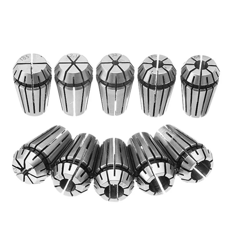Модель ER16 Диапазон захвата 1 мм, 2 мм, 3 мм, 4 мм, 5 мм, 6 мм, 7 мм, 8 мм, 9 мм, 10 мм Материал Сталь Общая высота 27,5 мм Наружный диаметр 17 мм Количество 10 шт