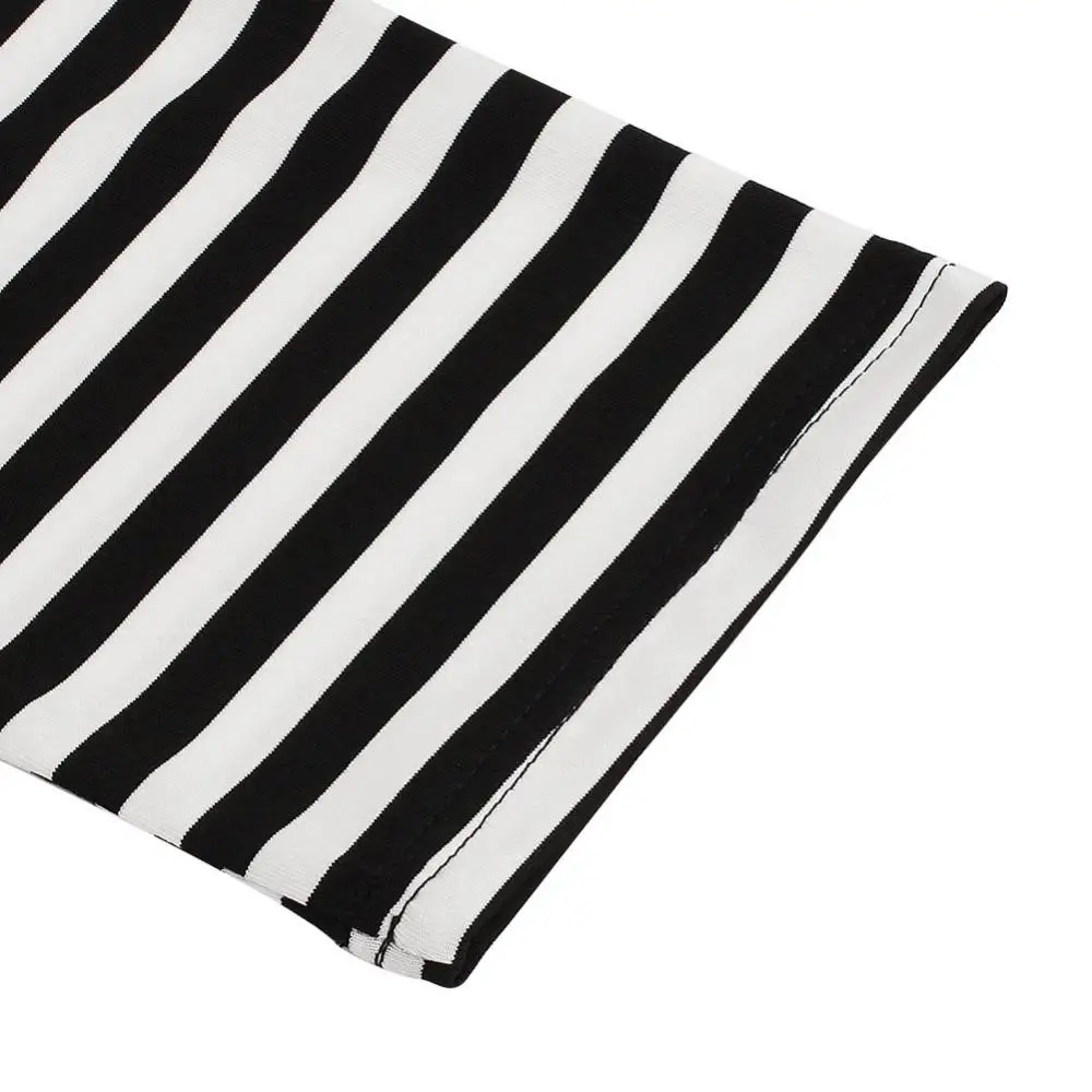1. Узор в полоску простой и стильный, легко сочетается с обувью на высоком каблуке.