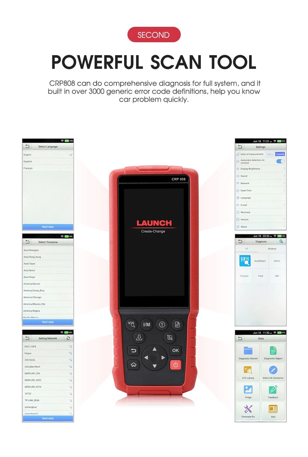 CRP808 может сделать комплексную диагностику для полной системы, и он построен в более чем 3000 ОБЩИХ ОПРЕДЕЛЕНИЯХ кода ошибки, поможет вам быстро узнать проблему автомобиля.
