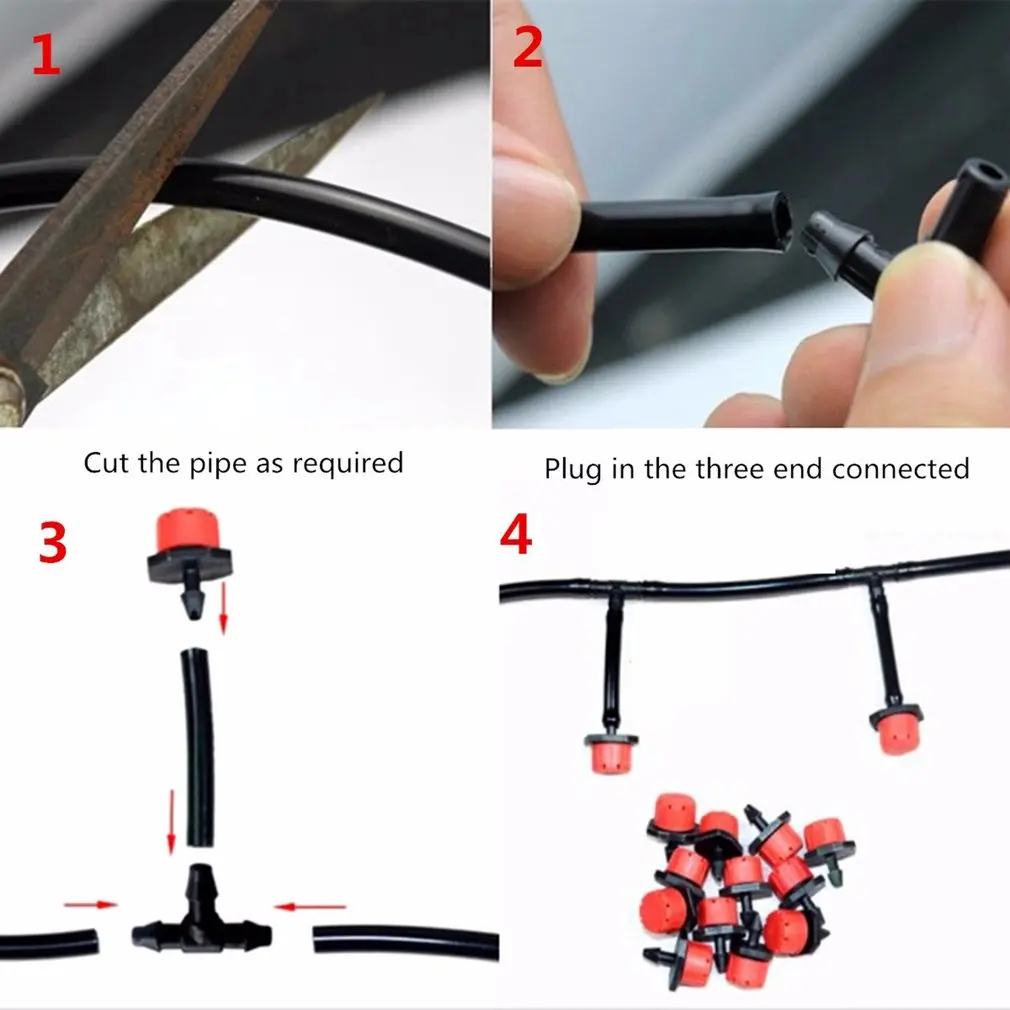 Полный набор для капельного полива: Этот набор для капельного орошения (подходит для труб) содержит все детали для запуска системы из смесителя можно расширить, чтобы покрыть до 20-25 квадратных метров площади орошения остановить полив ваших растений руками.