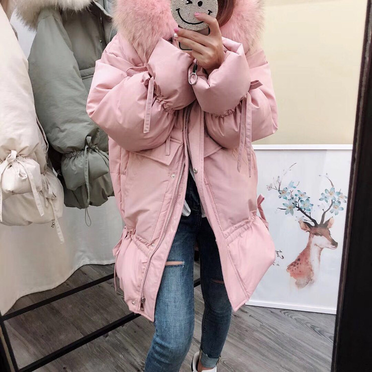 Женская зимняя куртка 2018, большой воротник из натурального меха енота, белая длинная парка на утином пуху, пуховое пальто, женская зимняя парка с капюшоном
